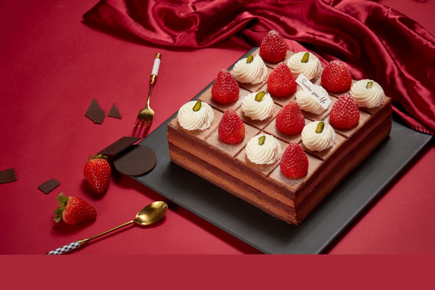 “黑巧甜心”仿若一位高贵又不失童心的少女,草莓与淡奶油的甜蜜结合,为香浓巧克力注入轻快与跳跃。顺滑的巧克力慕斯浸湿海绵蛋糕,新鲜覆盆子制作的果酱,勾勒出多层次的风味,萦绕在舌尖持久留存。