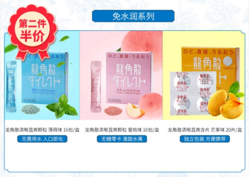 拥有200多年历史的日本龙角散,不仅在日本家喻户晓,也深受国人的喜爱,是主播、歌手、明星、教师等高频用嗓人士的常备护嗓好物。为了方便国人购买到原装正品龙角散,龙角散现已入驻天猫、京东、网易考拉等电商平台,以及华润ole、世纪联华、麦德龙、盒马鲜生、绿地超市等线下精品商超,消费者可自行前往选购。