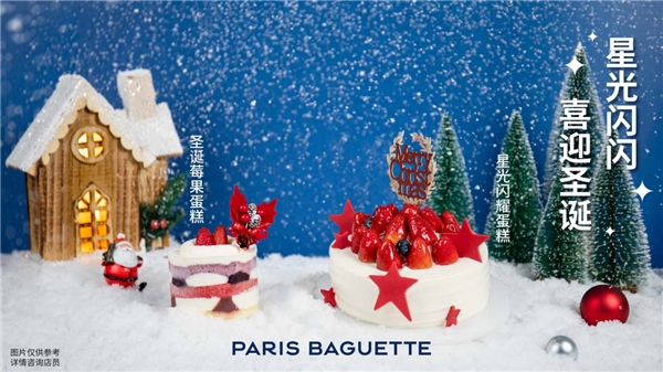巴黎贝甜2020年星光闪耀圣诞季,带你体验一场星光圣诞。12月1日,巴黎贝甜精美大小蛋糕和精致圣诞饼干全店上市,提前为你呈现美味圣诞的盛典。