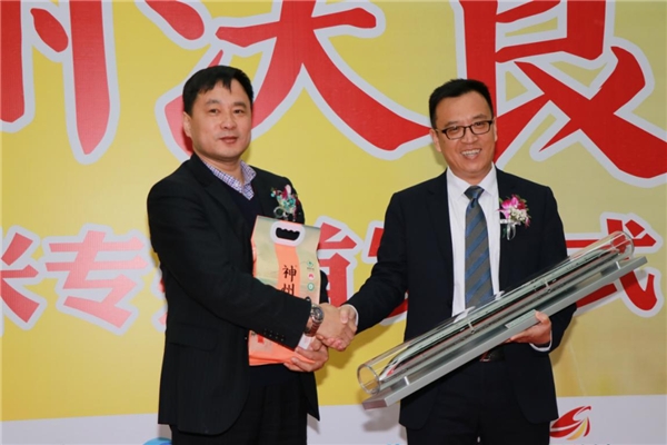 在诸位政府领导、企业领导及主流媒体嘉宾的共同见证下,“神州沃良·盘锦大米”品牌专列,搭乘着代表中国速度的高铁列车驶向崭新的里程。