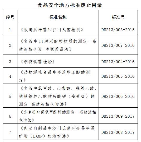 河北省卫生健康委关于废止7项食品安全地方标准的通告(冀卫通〔2020〕1号)