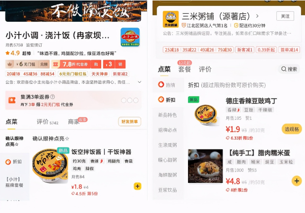 力争把握重庆地区这届年轻人,饭空辣酱在外卖渠道上做了尝试,在光电园、冉家坝点评高分店铺中,饭空辣酱与一批新兴的高颜值年轻化的品牌建立合作,目前饭空的30g杯装产品已经在曼玲粥店、三米粥铺、井盒炒饭、幸福粥铺这些年轻人广受欢迎的店铺中上架,打开外卖点单平台,你就能发现已经上线了饭空辣酱的便携产品。