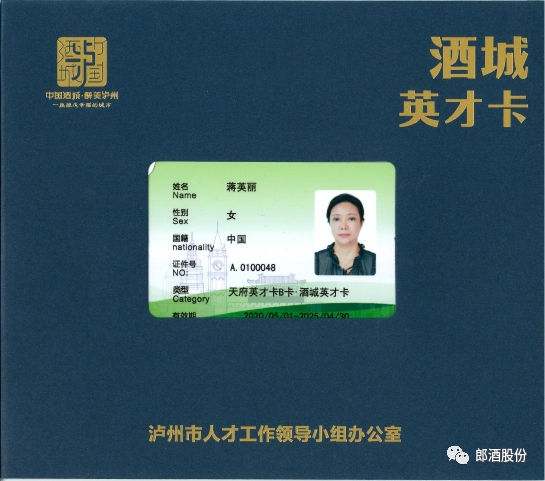 今年九月,蒋英丽、沈毅还作为郎酒品质体系的人才代表,荣获泸州市人才工作领导小组办公室向泸州市高端人才发放的“酒城英才卡”,成为泸州首批获此殊荣的高端人才。