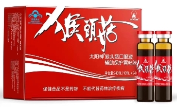 太阳神猴头菇口服液的主要成分为猴头菇和鸡(生物健),通过独特工艺更有效地提取出了生物精华,从而达到增强胃粘膜抗损伤力、促进胃粘膜修复和调节人体机能的作用,产品功效也得到了暨南大学医学院药理研究室等多所权威机构的检验和认可。