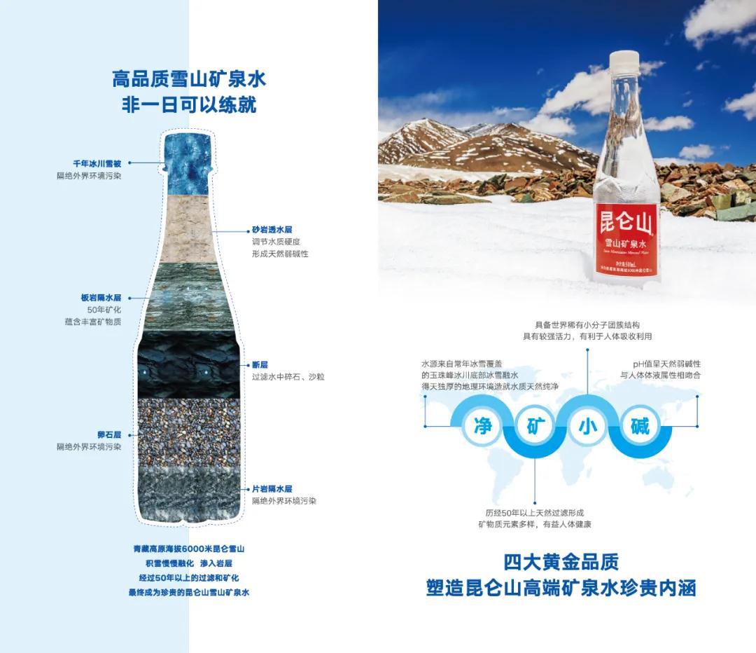 瓶装水市场增长依旧保持着较高速度,但与前两年相比瓶装水增长处于“换挡期”,中高端瓶装水逐渐成为增长新引擎、新动力。昆仑山矿泉水凭借其“净、矿、小、碱”的四大黄金品质优势,不仅要抢占包装水市场份额,更是要依托品牌、定制服务等综合优势加速“酒水融合”模式扩张,打造昆仑山增长“双引擎”!
