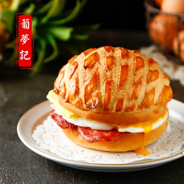 对于又咸又甜的配搭个人表示怀疑,一试真香现场!菠萝包的酥脆菠萝皮+鲜甜多汁的热菠萝片+汁水饱满的猪扒夹心+嫩滑荷包蛋=口感大爆炸!太多层次太丰富了!菠萝片经过烤制有种焦糖香,老板说店里用的都是印尼菠萝,包甜包多汁;菠萝包也都是一个个手工制作,工艺是比较繁琐的,但这是几十年传下来的手艺,现代机器替代不了的,这样做出来的就是松软,好吃!。