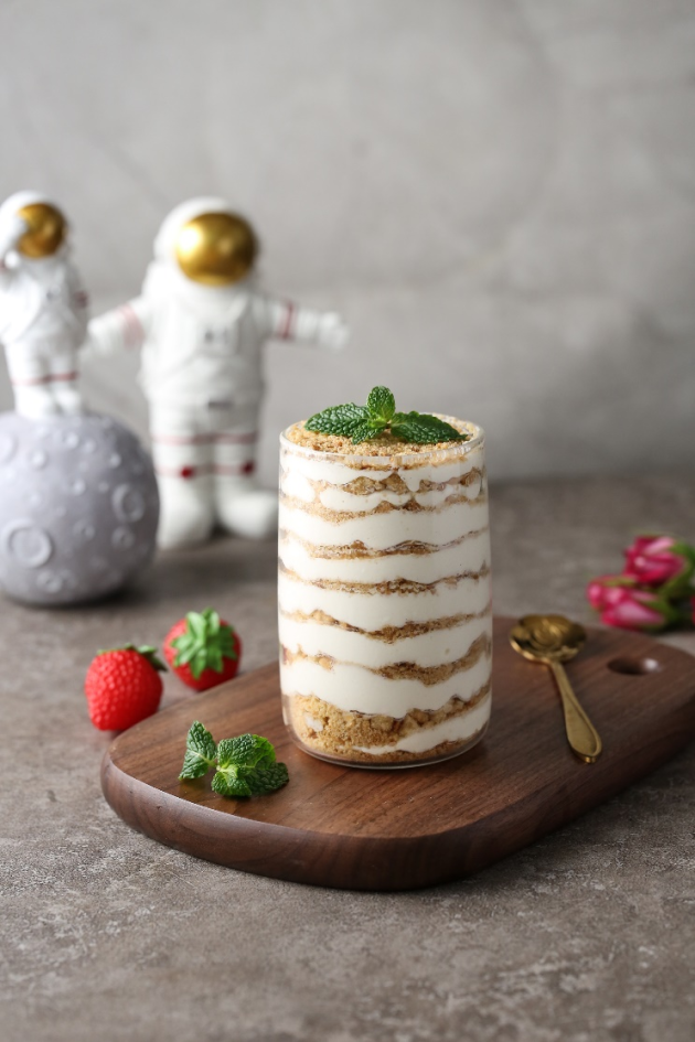 传统葡式甜品,冰淇淋口感的奶油底柔滑浓香,饼干打成粗细不同增加咀嚼度,一层层的甜蜜诱惑,口感上有一点像提拉米苏,但又是麦香味的,除了这款原味以外还有一款奥利奥味的!