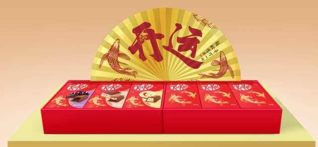 徐福记是多品类制造/销售的休闲零食巨头品牌之一,其产品包括沙琪玛、糖果、糕点、巧克力、果冻布丁五大类,利用多样品项、多元品类的优势,保持经典糖点产品外,还大力推出饼点产品,每一款都是福气满满。根据凯度的家户采购资料显示,2019年,饼点的市场规模是糖点将近4倍。主推的“聚福锦礼”综合礼箱,就是以饼点为主打的产品组合,另外还有近几年大火的芝士零食产品,内含徐福记5款芝士口味的饼点产品组合成了“好多芝士”礼罐,是市面上少有的多品类的芝士礼罐组合。在糖点上,继续以经典酥心糖和新年糖桶为主打,同时针对30-40元的空白价格带,推出了一款新品“果Q弹大福盒”,橡皮糖单包上印着6款吉祥字,可以边吃边自由组合成专属祝福,好吃又好玩。除了大众喜爱的产品外,还有走高端化的巧克力礼盒——迪拜进口奇巧开运礼盒,该礼盒加入了“盲盒“元素,盒子加上金扇造型,打开是随机的“开运、大吉、大利、暴富”的吉祥字样。