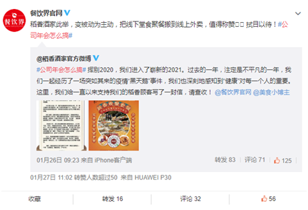 “致顾客信”以猝不及防的速度引爆网络,相关#公司年会怎么搞#话题曝光量一度突破800万,稻香酒家也随之火了一把。
