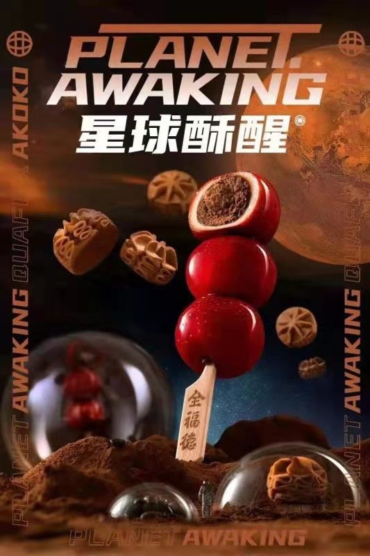 近日,高品质烘焙品牌AKOKO联合百年冰糖葫芦著名传统品牌全福德推出新品——星球酥醒曲奇冰糖葫芦。新老国货品牌联合,将曲奇填入到山楂内,打造了独具一格的曲奇冰糖葫芦。