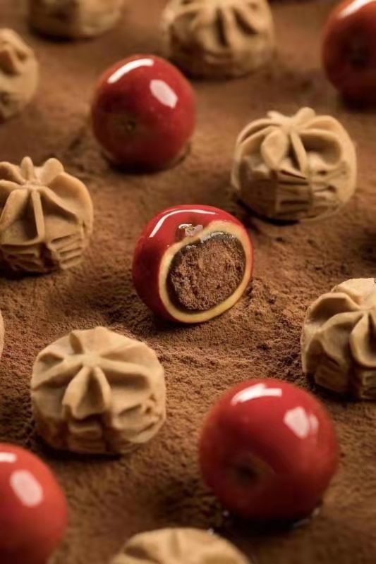 据悉,经过双方数十次实验后,AKOKO发现把成品曲奇捣碎后融入冰糖葫芦的内馅口感最佳,可以让产品的口味达到1+1>2的效果。山楂洗净后用专业工具上下祛籽,将混入曲奇的馅料再滚上一层曲奇碎,之后以专用工具注芯到山楂孔洞内填实抹平。当AKOKO的经典小花曲奇融入冰糖葫芦的内馅中,冰冻后,每一口都像在吃冰淇淋,细腻丝滑,口感非常神奇。