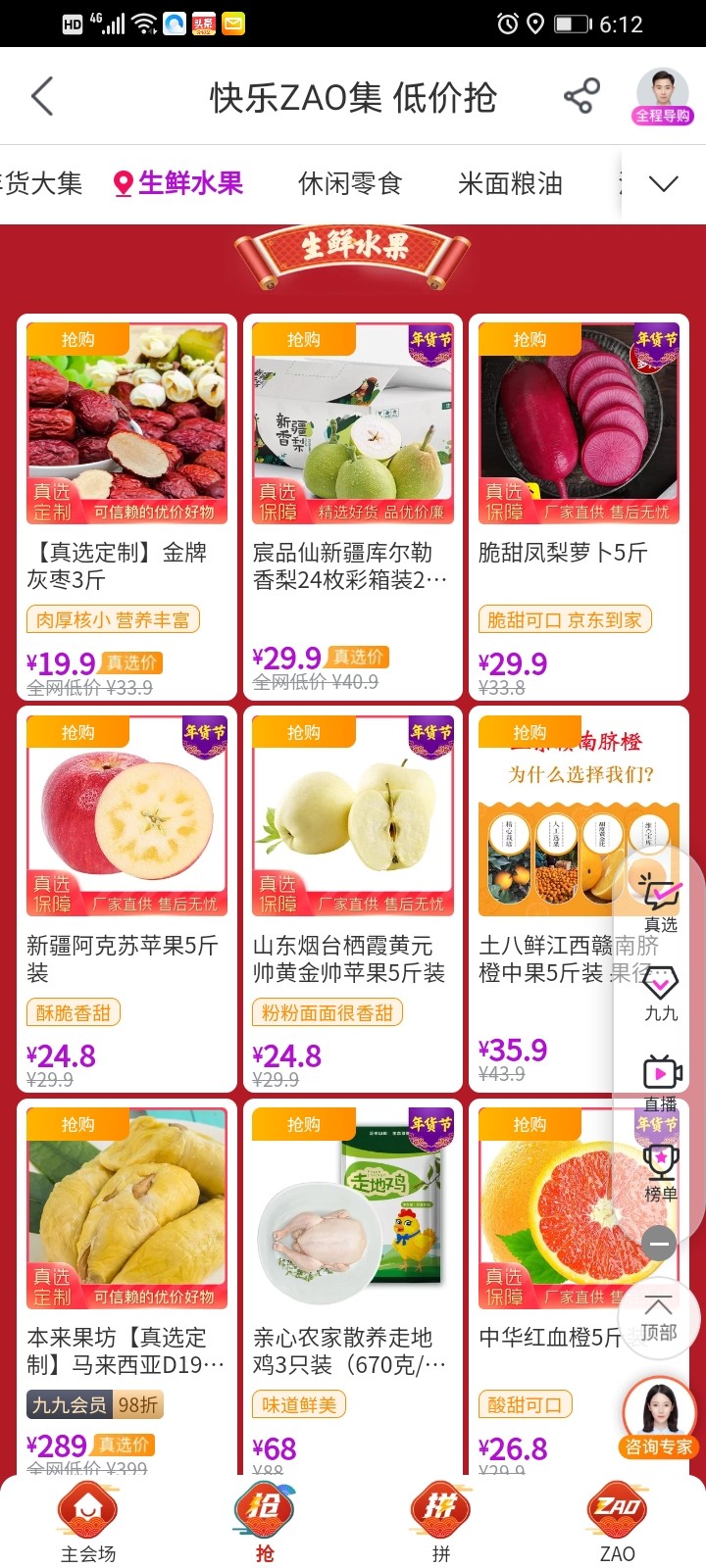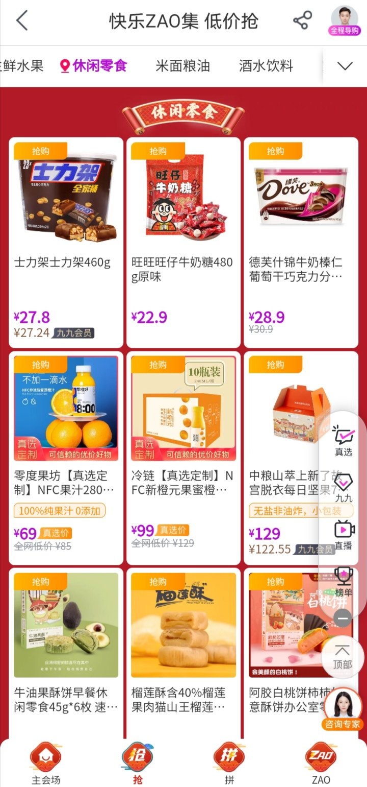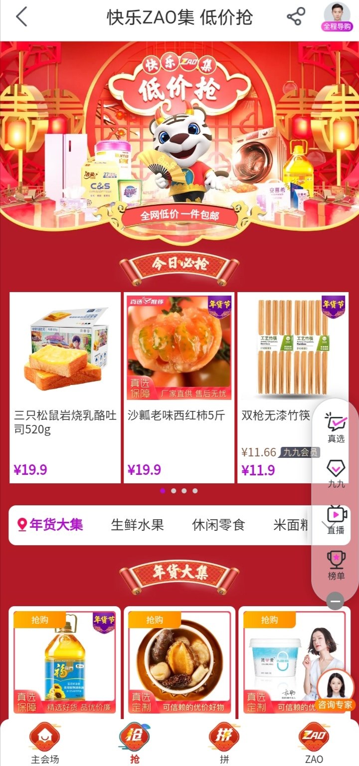 最近,“真快乐”APP“快乐ZAO集”超级年货节火爆开启了“抢-拼-ZAO”全面大促,包括“家电、零食、酒水、百货、生鲜、美妆”等在内的10大品类低价狂欢,件件低价,样样实惠,升级九九会员,还享99天价保服务,放心囤,不怕贵!接下来小编就带着上“真快乐”逛一逛,告诉你羊毛怎么薅才划算?