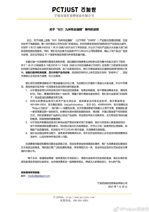 前段时间,Go!猫粮被很多用户投诉,网传猫咪吃后会出现呕吐、腹泻等症状,甚至于死亡。其中国独家代理商宁波百加世宠物食品有限公司及出品方加拿大宠物粮品牌Petcurean随即展开了举证调查和送检。