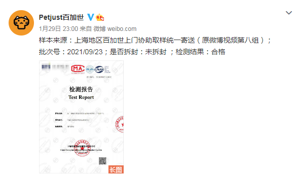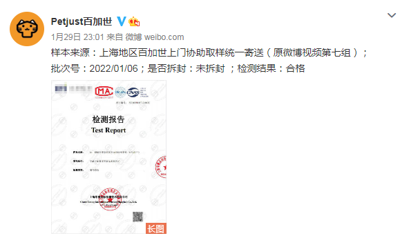 从对等关系来说,客户起诉,应该是需要拿出有公信力的、证明产品确实有问题的证明材料的,而不是比较谁的网络声量大。现在的情形是没有客户能出具相关客观材料,倒是品牌方出具了不少检测合格证明。截至目前,百加世已将送检且检测完成的8批次、12个猫粮样本的检测报告对外公示,12份检测报告结果均显示合格,相关检测报告已在百加世官方微信中完整公开,消费者扫描报告二维码也可在华测检测官网进行核验。
