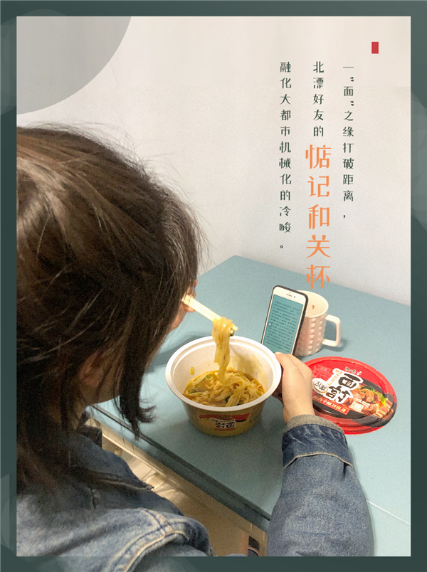 时间久了,这碗康师傅自热面的味道,和家紧紧相连。有时在北京,他对家想念得紧,偶尔也会吃上一碗,缓解相思。每喝下一口滋润温暖的面汤,那颗被抚慰的心就仿佛回到了千里之外的家。