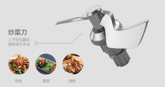 可完成肉类、蔬菜、海鲜的翻炒,独创刀头设计帮助调味品均匀地附着在食材上,高度复原炒菜时的翻滚动作,操作方便,搭配自带的智能菜谱,厨房小白也可以简单地完成硬菜制作,赋予生活多滋多味。