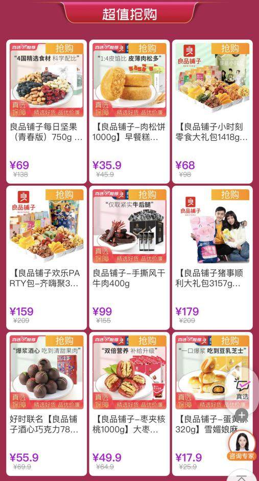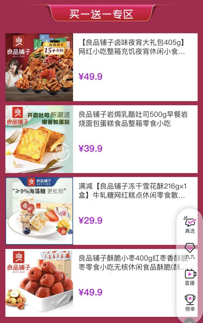 现在登录“真快乐”APP ,点击食品百货频道里的“良品铺子官方品牌日”活动页面,爱吃零食的你一定不能错过这个零食天堂。