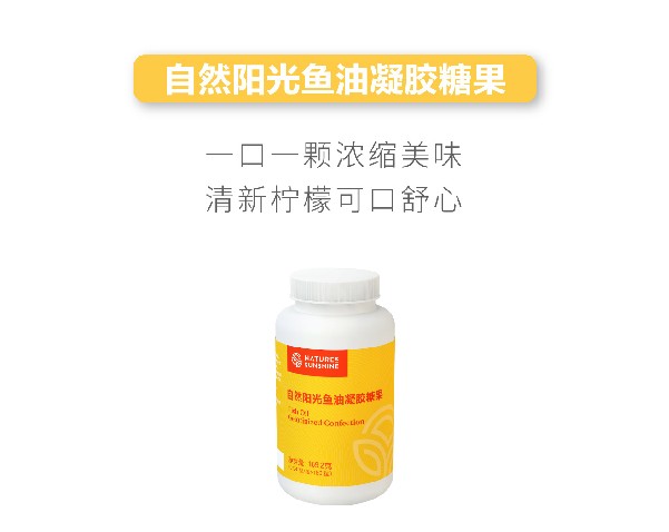 自然阳光赋力果蔬植物粉则以零脂肪、零蔗糖的苹果粉、生姜粉、迷迭香粉、葡萄籽提取物、橄榄果粉、低聚果糖等营养物质为主要成分,温和安全,易吸收,可有效补充人体营养所需。而自然阳光鱼油凝胶糖果,则在口味方面作出了升级创新。其清新柠檬的全新风味口感,能带给食用者更舒适美好的食用体验。
