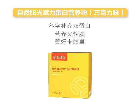 赋力营养系列升级版含巧克力味自然阳光赋力蛋白营养粉、自然阳光赋力果蔬植物粉,以及自然阳光鱼油凝胶糖果。