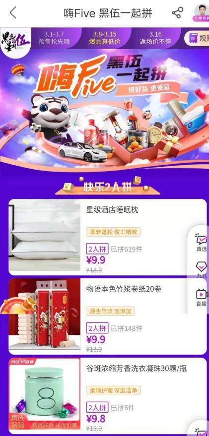 优惠不停是本次“黑伍”大促的主旋律。进入“真快乐”APP“黑伍”主会场,就能领取超大额优惠券,满800-100,满5999减700,最高能减2000元。拼购之外,“黑伍”活动期间,还可参与以及ZAO动团抽特斯拉大奖;每晚8-10点分享乐都会通过直播方式为消费者真选佳品,折扣低到超出想象。此外,各类娱乐化营销活动也让消费者买得快乐买到嗨。