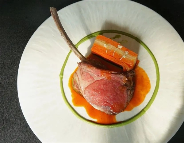 当日菜品之一:澳洲羊排、五香毛豆泥和千层胡萝卜