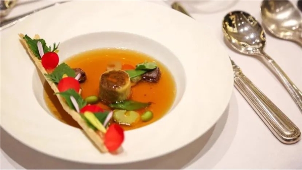 当日菜品之一:牛尾清汤配番茄克罗西蒂尼、时令蔬菜