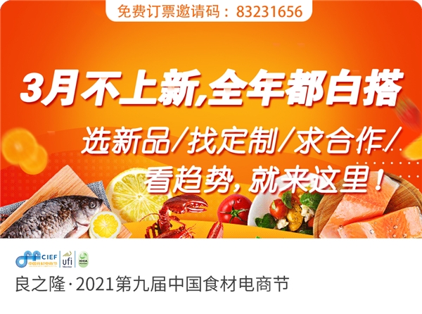 2021年3月28日-30日,良之隆·2021第九届中国食材电商节将在武汉国际博览中心隆重启幕,本届中国食材电商节展览面积首次突破15万平米,国内4000余家一线品牌厂商齐聚一堂,50000+种展品强势展出,40余场产业重磅活动火爆来袭!
