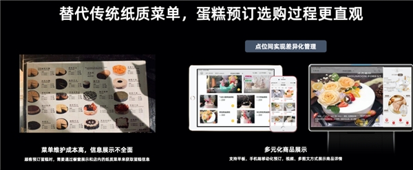 此外,在烘焙行业一个很重要的场景是预订,为啥重要?通常蛋糕是一个门店毛利最高的商品。蛋糕卖得好不好直接决定门店经营的效益。在任何一家烘焙门店,无论大小,大家都十分重视蛋糕的销售。但是,在销售预订场景中,依然还有大量的烘焙门店在使用纸质菜单。纸质菜单存在展示信息少,展示商品信息不全面不生动,容易磨损,维护成本高等问题。所以客如云烘焙2.0版本直接把它做了电子化。