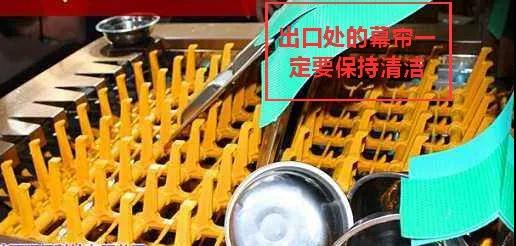 情况八:未定期维护消毒设备。例如洗碗机出口处的幕帘未定期清洁,会直接污染消毒后传送出来的餐饮具,造成餐饮具二次污染。