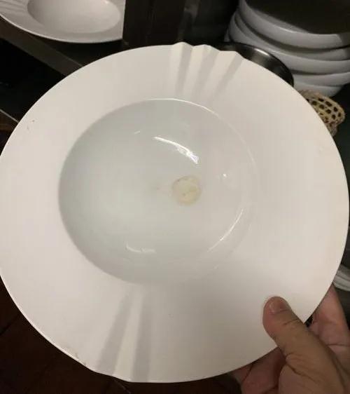情况二:清洗不到位。油渍残留:餐饮具没洗干净放在消毒柜里烘,餐盘从消毒柜里拿出来,发现浓缩后的精华残留在餐盘上。食物残渣残留:还有没将残渣刮干净进了洗碗机,洗好出来后仍有粘性强的食物。
