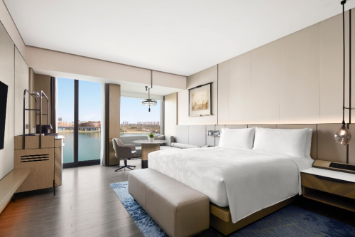 上海东方美谷JW万豪酒店位于奉贤区,265间客房和套房以米色和海蓝为主色调,柔和的装修风格和细致周道的服务,为家人带来惬意的居家感,体现了JW非凡款待。酒店还设有可爱的亲子房,宅居酒店就能度过欢乐亲子时光。更有浪漫的海滨风情和畅游葱郁的森林公园。屹立于金海湖边的酒店,放眼眺望,便可尽享这片连接黄浦江和东海的湿地美景。同时还毗邻奉贤博物馆、泡泡公园、九棵树艺术中心、傍依奉贤申隆生态园等景点,是度假及商旅的理想之所。