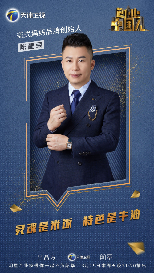 继特别赞助《辣妈辣么美》之后,2021年3月19日21:20,盖式妈妈·18道精品拌饭又受邀来到大型创投类节目《创业中国人》,其创始人陈建荣先生现场分享了盖式妈妈的发展历程,讲述一碗牛油拌饭背后的故事。
