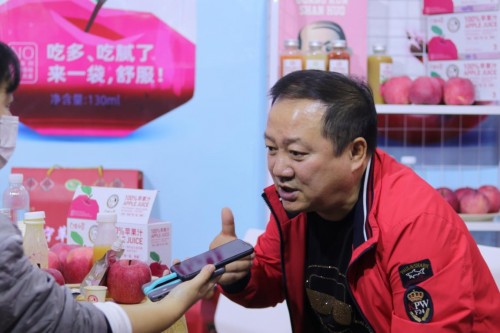 此次谢广坤来糖酒会上,就是给一款专为“广坤山货”打造的植物益生菌发酵原浆果汁做新品推广。首批产品共有八个品类,苹果汁、柠檬汁、蓝莓汁、橙汁、梨汁、葡萄汁、草莓汁、西瓜汁。糖酒会上重点推出的是100%原浆苹果果汁。