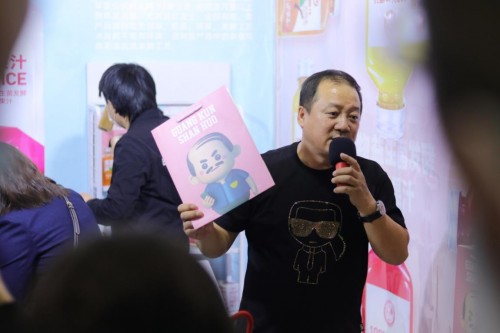 2021年4月7日,“广坤山货”100%原浆果汁新品首次亮相第104届全国糖酒商品交易会(以下成“糖酒会”)现场。谢广坤也是首次在线下为自己的“广坤山货”打Call。