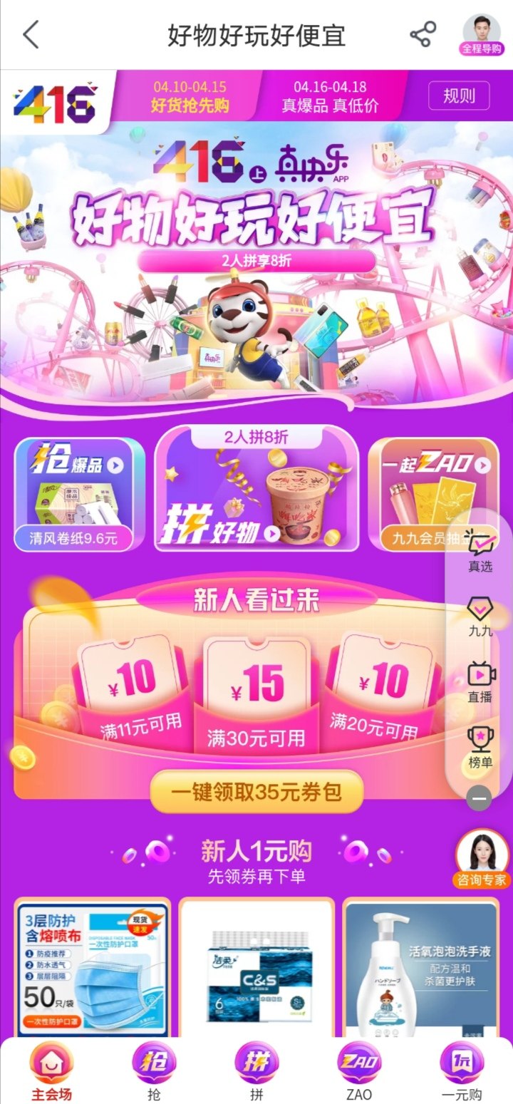除了以上3款产品,“真快乐”APPP百货食品专场,还有海量爆款任意挑。除了全场超低价,还有快乐升级的“抢拼ZAO”新玩法、砸金蛋免费得99会员、ZAO动团免费抽金条大奖等超级福利等你解锁。