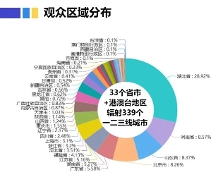 这些观众来自33个省市+港澳台地区,辐射339个二三线城市。其中,来自湖北省的观众最多,占总人数的28.92%。