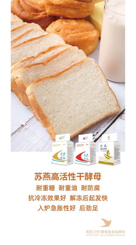 ——欧洲技术、发酵快、后劲足的苏燕烘焙高糖酵母(金装)和面点包子低糖500克(红装)酵母,经济实惠的低糖苏燕500克(蓝标)和雪燕酵母;