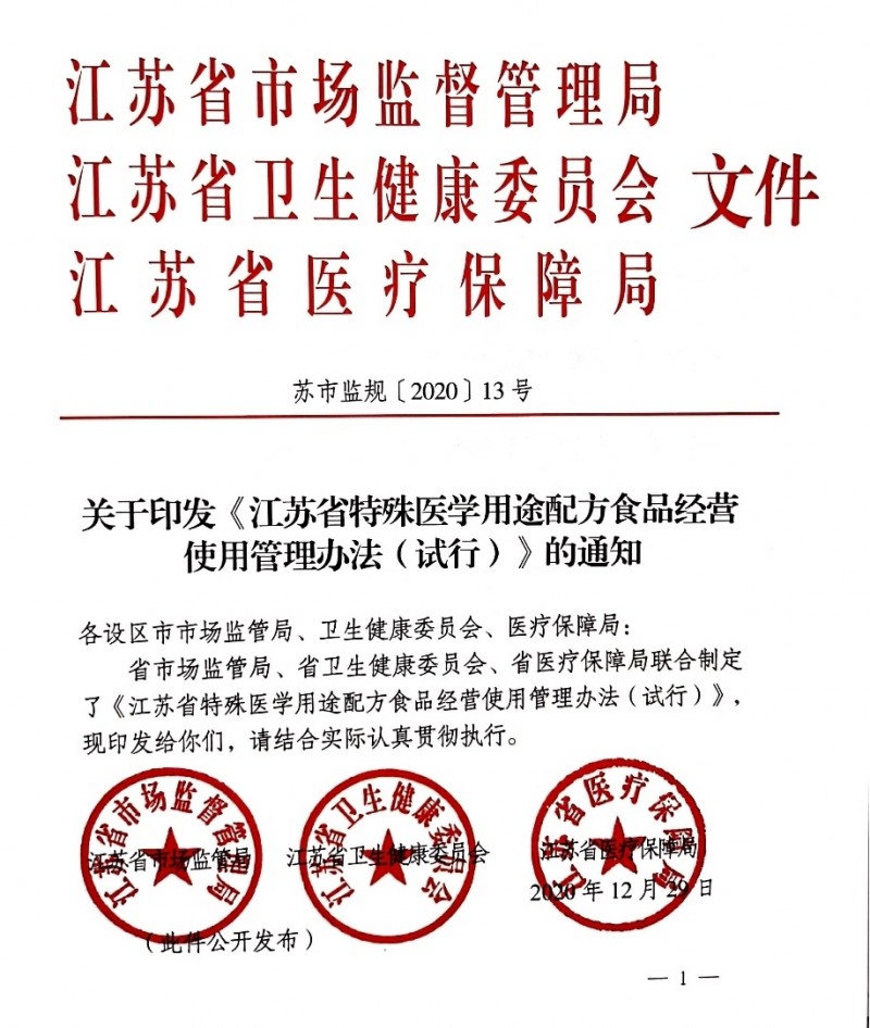 江苏省特殊医学用途配方食品经营使用管理办法