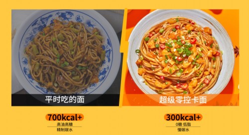 据悉,控卡面采用的日本“LONGLIFE鲜湿面”工艺,将魔芋、荞麦等粗粮烹制成新,通过控卡科技,实现真0糖低脂标准,在口感与味道上均与普通面条不分伯仲。据品牌介绍,每份控卡面仅含300多卡,是普通面热量的1/2,做到控卡饱腹,满足年轻人对健康美食的多层次期待。