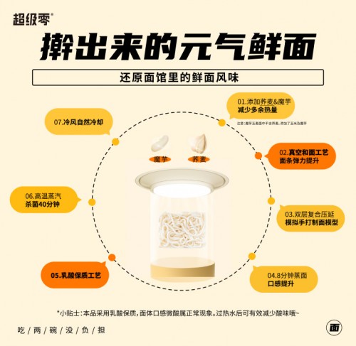 其次,控卡面采用日本进口LL鲜面制面技术,以粗粮制面,使用天然乳酸保鲜还原面条本来新鲜口感。此外,控卡面的烹调方式也超级便捷,在热水浸泡1分钟的即食方法下,使得不少年轻人在熬夜加班、健身撸铁、宅家追剧、游戏狂欢等间隙都会选其陪伴左右。