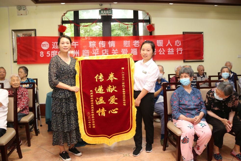 余杭绿城蓝庭老年颐养公寓特意赠送了一面锦旗给85伙伴们,感谢多年来的爱心奉献。