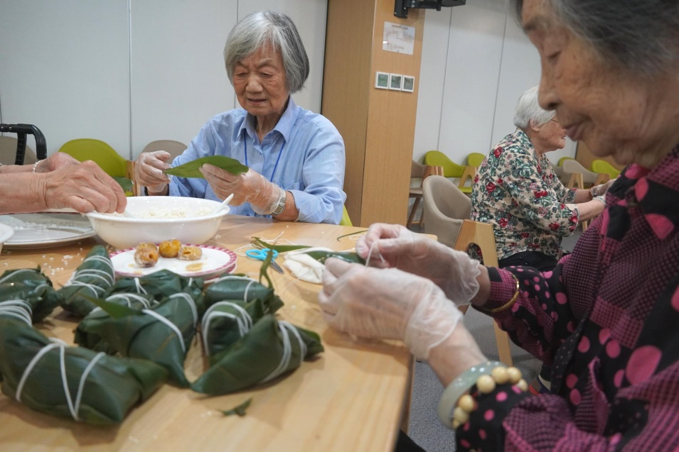 10日上午85度C总部员工代表来到上海徐汇区社会福利一院、二院,与老人们齐聚一堂,包粽子迎端午。连续四年节日的陪伴,让老人们特别期待这场活动,老人们平均年龄85岁,但是包粽子的手法娴熟,将糯米与蜜枣轻巧的裹进清香的粽叶中,灵巧的双手将绳子缠绕粽子上,不一会儿三角形、四角形、锥字形…各种形态的蜜枣粽呈现在眼前,老人们开心地举起自己包的粽子,拍照留作纪念。二院的姚院长动情地说:感谢85度C这么多年一直关心老人们,每次活动的举办都让他们感受到家人的陪伴,感受到社会爱心企业对他们的关心。