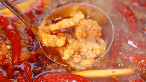 当然,小酥肉涮火锅是必不可少的,小酥肉在热辣的火锅汤里“走”一遭,火锅的麻辣融合小酥肉独特的香气,小酥肉变得绵软肥糯,又是另一种风味。