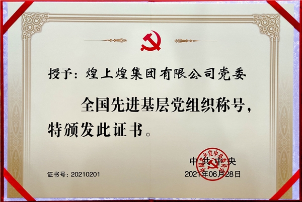 通过抓好党的组织和党的工作“两个覆盖”,做实标准化、规范化、信息化“三化建设”,创建“12345”党建工作体系,开创“四心推四强”党建新模式,煌上煌集团的党建工作“规定动作不走样,自选动作有特色”,打造出了“党旗火红,企业红火”的非公企业党建品牌,让党建与企业发展完美融合,相得益彰,蹚出了一条“企业强党建,党建强企业”,党建与企业发展互促共进的非公企业党建新路,一举获得了“全国非公有制经济双强百佳党组织”“全国工人先锋号”等诸多荣誉。6月28日,煌上煌集团再获殊荣,被党中央授予“全国先进基层党组织”荣誉称号。