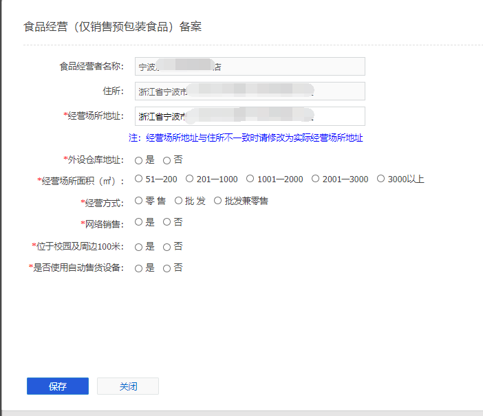 按照要求填写“食品经营(仅销售预包装食品)”备案相关信息,完成后与登记信息一并提交。