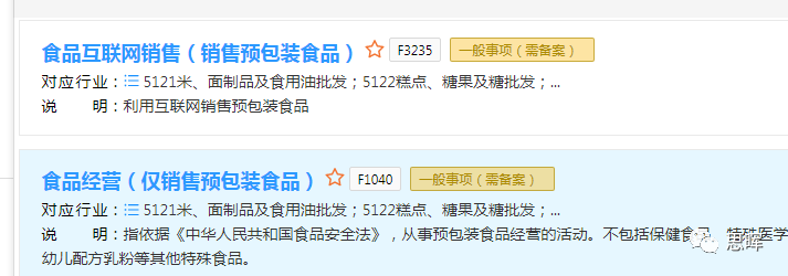 食品经营(仅销售预包装食品),或者食品互联网销售(销售预包装食品),如下图。