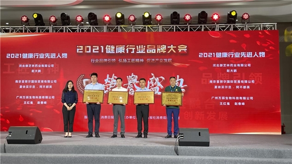 大会期间,由消费日报社举办的“2021中国健康行业品牌大会暨盛典”盛大召开,河北御芝林药业有限公司总经理赵大鹏凭借对健康行业的突出贡献,荣获“2021健康行业先进人物”。