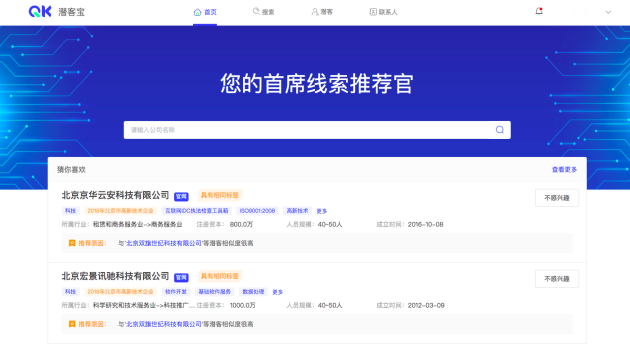 获取精准目标品牌客户,是食品饮料上下游企业To B营销的主要方式之一。百炼智能潜客宝可通过AI算法帮助企业获取精准潜在目标客户。企业只需输入几个潜在客户名称,系统便可自动生成目标客户画像,从7200万企业库中智能推荐符合画像的客户,并帮助企业准确触达核心联系人。同时,根据企业动态信息,通过预测模型,帮助企业预知商机,推荐触达客户的最佳时机,提高成单率。