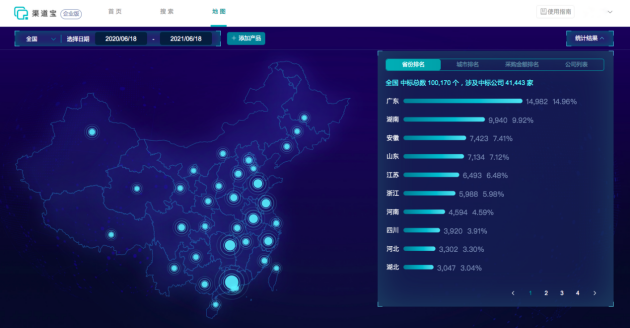 除了线下门店,渠道销售也是食品饮料企业的一个重要营销方向。基于对招中标大数据的分析,百炼智能独创了一个新的渠道拓展方式,即企业可以拓展优质的中标公司为渠道,与其共同为招标方提供产品或服务。通过这种方式参与到更多招标项目中,拉动渠道销量。百炼智能渠道宝通过亿级招中标数据的关系挖掘,形成百亿级招中标关系链,结合AI算法及模型,可帮助企业找到更多的优质分销渠道。以牛奶生产厂商为例,渠道宝可对牛奶进行全面的中标市场洞察,牛奶在全国中标的地区、城市、和中标公司的详细情况一目了然;通过标的物为牛奶的所有中标公司的中标次数、中标金额、客户行业分布、中标项目地区分布等详细信息的分析,牛奶生产厂商可以综合评估中标企业的实力,确定渠道拓展列表,高效拓展新渠道。
