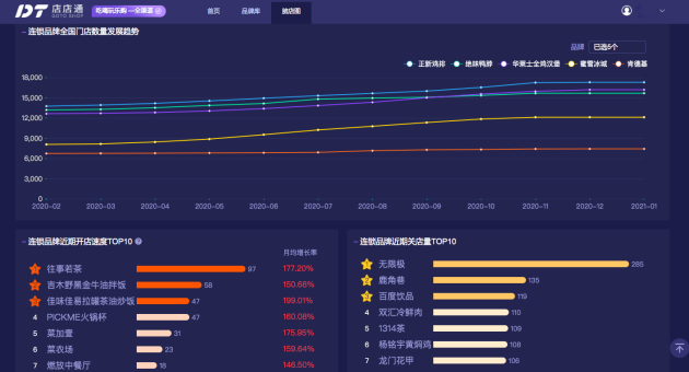食品饮料行业在经营上对门店终端依赖性很强,门店拓展是食品饮料企业营销的重中之重。百炼智能店店通汇集全量互联网数据及线下门店数据,运用NLP、图像识别等AI技术将数据深度处理及整合,打造1000万优质“门店-品牌-企业”动态数据库,可为企业提供从目标市场洞察到门店智能推荐的门店拓展闭环。通过店店通的脑店图,企业可看到全国各个区域、各类门店每月开店和关店情况,以及连锁品牌的开店和关店速度,全面了解产品的门店覆盖率、区域覆盖率及竞品的门店布局动态等信息。以咖啡店为例,店店通显示全国共有54449家咖啡店,除了展示每一家咖啡店的基础信息以外,还通过大数据洞察,汇集咖啡店的周边商圈发展情况,旺店指数,区域竞争力等详细信息,辅助品牌主判断该咖啡店的综合竞争力,得出更加精确的门店渠道拓展方向。品牌主还可根据自己要拓展的区域、城市、规模等条件进行二次筛选,对筛选出的门店进行在线标记,高效定位自己要拓展的门店清单,最终实现成功拓展门店。